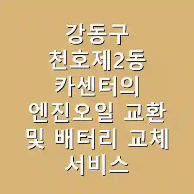강동구 천호제2동에 위치한 카센터는 차량 관리의 필수 서비스를 제공하는 곳입니다. 특히 엔진오일 교환과 배터리 교체는 자동차의 성능을 유지하는 데 중요한 요소입니다. 이들 서비스는 차량의 엔진과 전기 시스템의 효율성을 높이며, 정기적인 점검과 교체가 필요합니다. 이 글을 통해 강동구 천호제2동 카센터의 서비스에 대한 정보와 가이드를 얻을 수 있습니다.