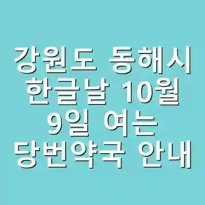 10월 9일 한글날에는 동해시에서 여러 당번약국이 운영됩니다. 각 약국의 위치와 운영시간을 사전에 확인하는 것이 중요합니다. 긴급한 상황 시 필요한 약품을 쉽게 구매할 수 있도록 미리 정보를 확보해 두시기 바랍니다.