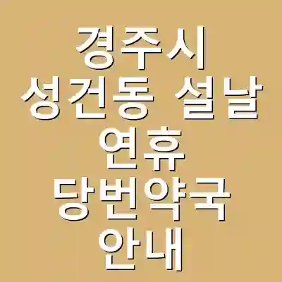 경주시 성건동의 설날 연휴 동안 운영되는 당번약국 정보를 확인하는 것은 매우 중요합니다. 공식 포털과 전화 확인을 통해 효율적으로 약국을 찾고, 연휴 동안 건강을 챙길 수 있도록 준비하세요.