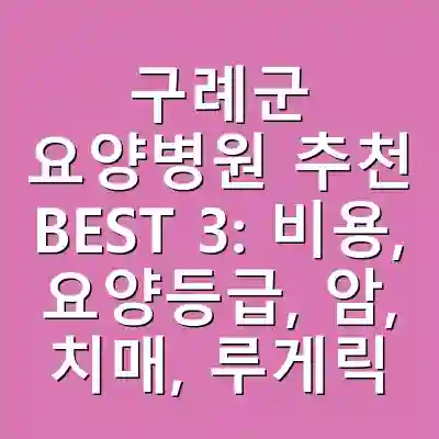 구례군의 추천 요양병원 3곳을 소개했습니다. 각 병원는 비용, 요양등급, 전문 의료진 등의 정보를 제공합니다. 환자의 상태에 맞는 병원을 선택하는 것이 중요합니다.