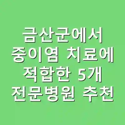 중이염은 귀에 염증이 발생하여 청력 저하와 통증을 유발하는 흔한 질환입니다. 특히 금산군과 같은 지역에서는 적절한 의료 기관의 선택이 중요합니다. 중이염 치료 전문병원을 선택할 때는 의료진의 경험, 치료법, 시설의 현대성 등을 고려해야 합니다. 이 글에서는 금산군 내 중이염 치료에 효과적인 5곳의 전문병원을 추천합니다. 이를 통해 적절한 의료 서비스를 받는 데 도움이 되길 바랍니다.