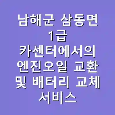 남해군 삼동면의 1급 카센터는 엔진오일 교환과 배터리 교체 서비스를 통해 차량의 성능과 안전성을 유지하는 데 중요한 역할을 합니다. 정기적인 정비와 관리를 통해 차량의 고장을 예방하고, 안정적인 운전을 이어갈 수 있습니다. 차량 소유자는 이러한 정비의 중요성을 이해하고, 적시에 필요한 서비스를 요청하는 것이 중요합니다.