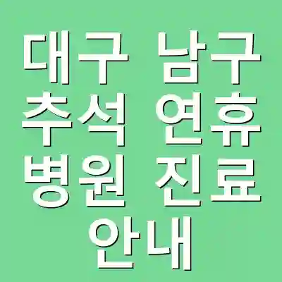 A: 대구 남구에는 여러 병원과 약국이 추석 연휴 동안 제한된 시간에 운영됩니다. 미리 전화 확인 후 방문하는 것이 좋습니다.