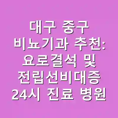 A: 대구 중구에는 24시간 진료가 가능한 비뇨기과가 있으며, 요로결석에 대한 전문적인 치료를 제공합니다. 야간 진료가 가능한 병원을 미리 알아두는 것이 중요합니다.