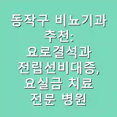 서울 동작구에서 비뇨기과를 찾고 계신가요? 요로결석, 전립선비대증, 요실금 등의 문제는 많은 남성들이 겪는 대표적인 비뇨기과 질환입니다. 이러한 질환들은 일상생활에 큰 불편을 초래할 수 있어 전문적인 치료가 필요합니다. 본 포스팅에서는 동작구에서 신뢰할 수 있는 비뇨기과 병원들을 추천하며, 각 질환에 대한 치료 방법과 관리 방안에 대해 자세히 설명드리겠습니다. 이 글을 통해 비뇨기과 선택 시 고려해야 할 사항과 각 질환에 대한 정보도 함께 얻어가시길 바랍니다.
