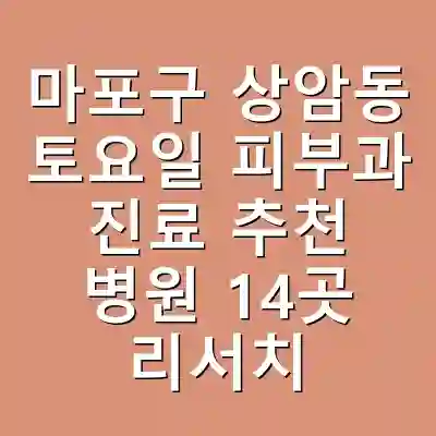 마포구 상암동에서 토요일에 진료를 받을 수 있는 피부과 병원 14곳을 소개했습니다. 각 병원마다 제공하는 서비스와 치료법이 다르므로, 본인의 피부 상태와 치료 목적에 맞는 병원을 선택하는 것이 중요합니다. 전문적인 치료를 통해 건강하고 아름다운 피부를 유지하시길 바랍니다.