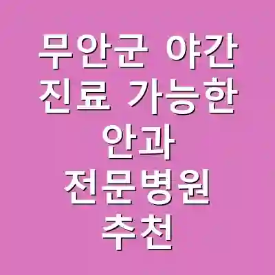 무안군에서 토요일과 일요일에 야간 진료가 가능한 안과 전문병원을 찾는 것은 바쁜 현대인들에게 매우 중요한 일입니다. 위에서 소개한 병원과 그들의 진료 서비스는 환자들에게 시간적 편의를 제공합니다. 정기적인 안과 진료를 통해 시력을 관리하고, 건강한 눈을 유지하세요.