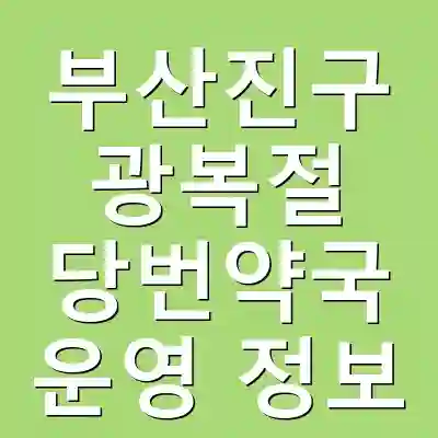 부산진구에서 광복절 하루 동안 운영하는 당번약국은 보건복지부와 대한약사회에서 지정한 약국들입니다. 이들 약국은 일반적으로 오전 9시부터 오후 1시까지 또는 오후 2시부터 6시까지 단축 운영됩니다. 부산진구의 경우, 특정 지역에 따라 1~3곳이 당번약국으로 지정되며, 이들은 시민들이 급하게 필요한 의약품을 구매할 수 있도록 지원합니다. 정확한 정보는 부산진구청 홈페이지나 보건복지부의 공식 사이트에서 확인 가능합니다.