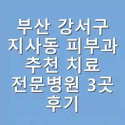 부산 강서구 지사동의 피부과 3곳은 각각 여드름, 주름, 아토피 치료에 특화되어 있습니다. 각 병원의 치료방법과 환자 후기를 통해 피부 고민 해결에 큰 도움이 될 것입니다. 자신에게 맞는 병원을 선택하여 건강한 피부를 찾는 여정에 도움이 되기를 바랍니다.