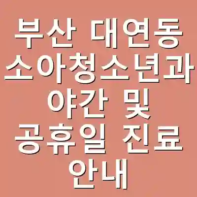 | 야간 진료 | 부산 대연동 소아청소년과는 평일 저녁 및 주말 진료를 제공합니다. | 아이의 건강 문제를 신속하게 해결 가능 |