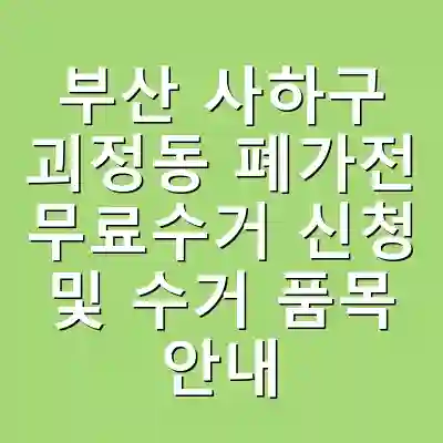 부산 사하구 괴정동에서 제공하는 폐가전 무료수거 서비스는 사용하지 않는 가전제품을 무상으로 수거해주는 편리한 제도입니다. 온라인 및 전화로 신청할 수 있으며, 다양한 품목이 포함됩니다. 이 서비스를 통해 환경 보호와 자원 재활용에 기여할 수 있습니다.