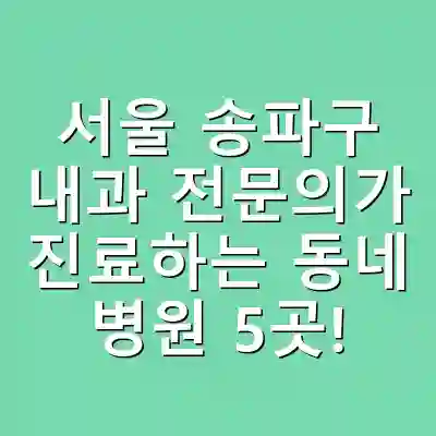 서울 송파구 내과 전문의가 진료하는 동네 병원 5곳을 소개했습니다. 각 병원은 전문성과 접근성을 바탕으로 다양한 내과 질환을 관리하고 있습니다. 적절한 병원을 선택하여 지속적인 건강 관리를 받을 수 있는 기회를 가져보시기 바랍니다.