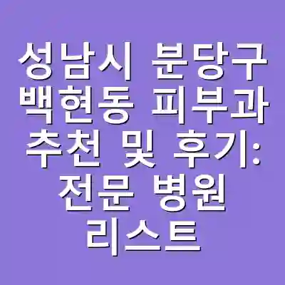 성남시 분당구 백현동의 피부과들은 전문성과 신뢰성을 바탕으로 다양한 피부 질환을 효과적으로 치료하고 있습니다. 환자들은 세심한 진료와 후속 관리에 높은 만족도를 보이며, 방문 시 사전 예약과 충분한 정보 제공이 중요합니다. 각 병원의 후기를 참고하여 최적의 피부과를 선택해보세요.