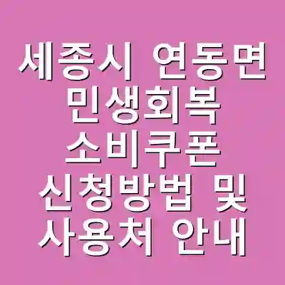 소비쿠폰의 지급일은 2025년 7월 중으로 예정되어 있습니다. 쿠폰은 지역화폐 형태로 지원되며, 사용처는 세종시 연동면 내의 가맹점으로 제한됩니다. 이로 인해 주민들은 지역 내 다양한 업소에서 쿠폰을 사용할 수 있으며, 이를 통해 지역 경제가 활성화되는 효과를 기대할 수 있습니다.