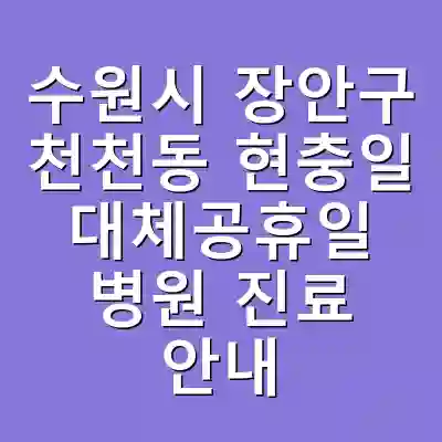 현충일 대체공휴일에 수원시 장안구에서 진료를 받을 수 있는 병원과 의원에 대한 구체적인 정보를 제공했습니다. 주요 의료기관의 위치와 진료 가능 여부를 사전에 확인하여 건강 문제에 대비할 수 있도록 안내하였습니다. 이러한 정보는 공휴일 동안의 건강 관리에 큰 도움이 될 것입니다.