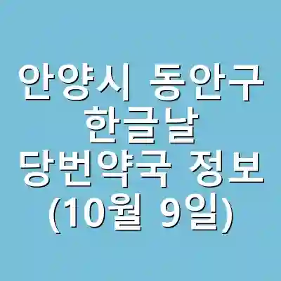 다음은 안양시 동안구에서 한글날인 10월 9일에 운영되는 주요 당번약국의 리스트입니다: