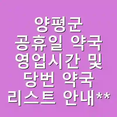 | 운영 시간 | 양평군 공휴일 약국은 오전 9시부터 오후 1시 또는 2시까지 운영됩니다. | 긴급 상황 시 신속한 대처 가능 |