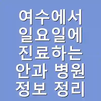 여수에서 일요일에 진료하는 안과 병원에 대한 정보를 정리했습니다. 여수전남병원, 여수제일병원 등 주요 병원의 연락처와 예약 방법을 안내했습니다. 응급상황 시 즉각적으로 대처할 수 있는 방법도 함께 제공하였습니다.