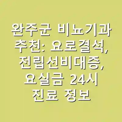 완주군에는 요로결석, 전립선비대증, 요실금에 대한 전문 비뇨기과가 있습니다. 이들 질환은 조기 진단과 치료가 중요하며, 24시 진료 서비스가 제공됩니다. 정기 검진을 통해 건강을 유지하고 질환을 예방할 수 있습니다.
