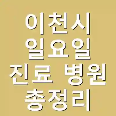 이천시에서는 다양한 일요일 진료 병원이 운영되고 있습니다. 응급 상황 시 편리하게 방문할 수 있는 병원 리스트를 확인하여 건강 문제에 대비하는 것이 중요합니다. 이 정보가 유용하길 바랍니다.