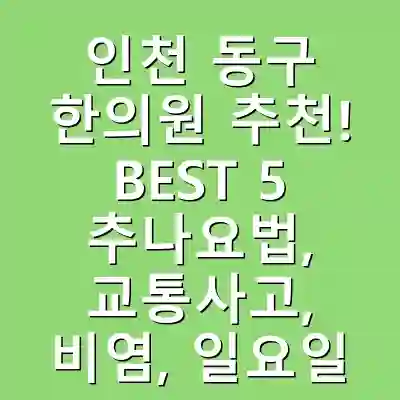 인천 동구에서 효과적인 한의원과 치료법을 찾고 계신가요? 이번 포스팅에서는 인천 동구 지역의 추천 한의원 5곳을 소개하며, 각각의 한의원이 제공하는 서비스와 치료 방법에 대한 상세한 정보를 제공할 것입니다. 특히 추나요법, 교통사고 후유증 치료, 비염 관리, 다이어트 한약, 그리고 일요일 진료 가능 여부에 초점을 맞추어 소개할 예정입니다. 이 글을 통해 각 한의원의 특성과 환자들의 후기를 확인하시고, 필요한 치료법을 선택하는 데 도움을 받을 수 있습니다.