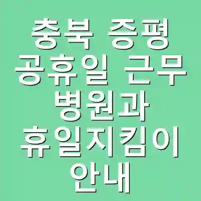충북 증평의 공휴일 근무 병원과 휴일지킴이 정보를 통해 주민들은 응급 상황에 대비할 수 있습니다. 사전에 병원과 약국의 운영 시간을 확인하고, 필요 시 전화로 직접 확인하는 것이 중요합니다. 공공의료 서비스의 적극적인 활용은 지역 사회의 건강 증진에 기여합니다.