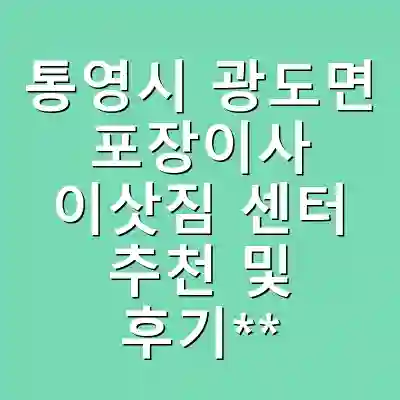 신뢰할 수 있는 통영시 광도면 이삿짐 센터 선택 기준