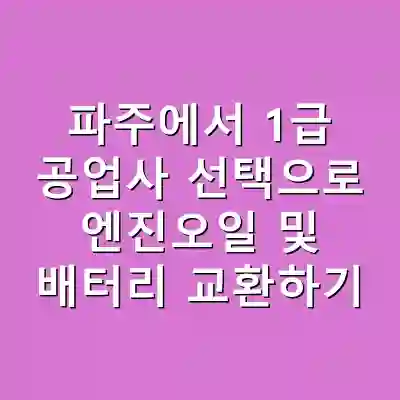 파주시에서 1급 공업사의 카센터를 선택하여 엔진오일 교환 및 배터리 교체를 받는 것은 차량의 성능과 수명을 유지하는 데 매우 중요합니다. 정기적인 관리와 전문가의 도움을 통해 안전하고 효율적인 차량 운행을 이어가시길 바랍니다.