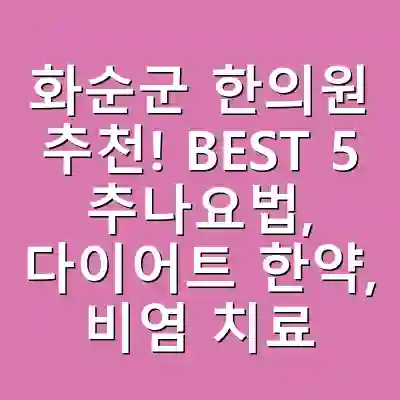 화순군 한의원을 찾고 계신가요? 이 글에서는 화순군에서 추천할 만한 한의원 5곳을 소개합니다. 각 한의원의 특성과 제공하는 치료 방법에 대해 자세히 알아보겠습니다. 특히 추나요법, 다이어트 한약, 비염 치료 후기에 대한 정보를 포함하여, 환자들에게 적합한 최적의 선택을 도와드립니다. 이 글을 통해 화순군 한의원에서 어떤 치료를 받을 수 있는지, 각 한의원의 장점과 특징을 파악할 수 있습니다.