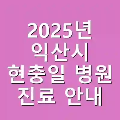 익산시의 현충일 병원 진료는 2025년 6월 6일에 외래 진료는 휴진하고 24시간 응급실이 운영됩니다. 병원 방문 전 예약과 대기 시간을 확인하여 신속하게 진료를 받을 수 있도록 준비하세요. 응급 상황 발생 시 신속하게 대응할 수 있는 체계를 잘 알고 있는 것이 중요합니다.