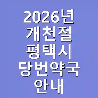 2026년 개천절에 평택시의 당번약국 정보를 미리 확인하고 준비하면, 응급 상황에서도 빠르고 효율적으로 대처할 수 있습니다. 이 정보를 통해 주민 여러분의 건강과 안전이 더욱 보장될 것입니다.