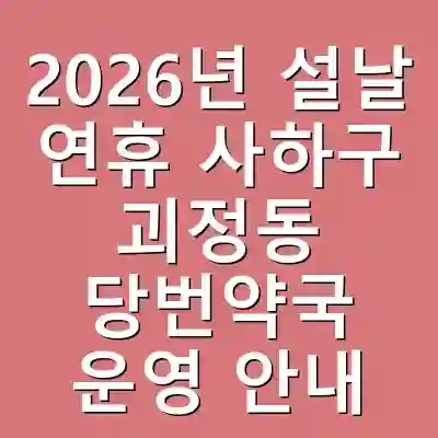 2026년 설날 연휴 사하구 괴정동 당번약국 운영 안내