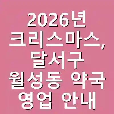 2026년 크리스마스에 달서구 월성동에서 영업 중인 약국에 대한 정보를 정리해 보았습니다. 연휴 기간 동안 건강을 유지하고 필요한 약품을 확보하기 위해 사전 준비가 중요합니다. 이 정보를 바탕으로 안전하고 행복한 크리스마스를 보내시길 바랍니다.