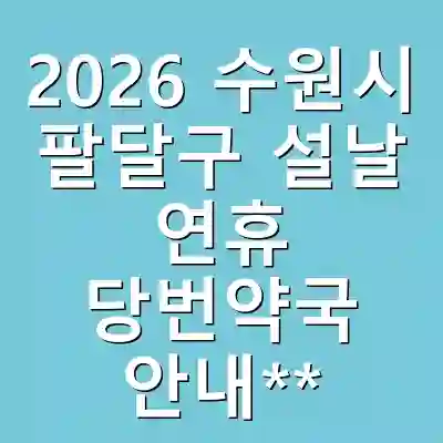 2026년 설날 연휴 기간 동안 수원시 팔달구에서는 여러 당번약국이 운영될 예정입니다. 이 리스트는 연휴에 맞춰 업데이트될 수 있으므로, 사전에 확인 후 방문하는 것이 좋습니다. 예를 들어, 성빈센트병원 근처의 약국이나 주요 대로변에 위치한 약국들이 포함될 가능성이 높습니다. 방문 전에 전화로 운영 시간을 확인할 것을 권장합니다.